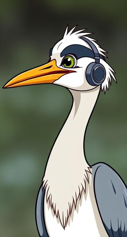 Die reiger ging er op een gegeven moment, na een mini brokje kaas opgepeuzeld te hebben, met mijn oortjes aan een draadje vandoor. De draad met mijn oortjes vlogen sierlijk achter hem/haar aan door de lucht. Een speciaal en bizar gezicht maar het liep goed af want na de oortjes op een dak gedropt te hebben kwam hij/zij al weer naar me toe vliegen voor nog een stukje kaas. Het resulteerde in een prachtige tekening die ik van een vriend kreeg met als titel "evolution".