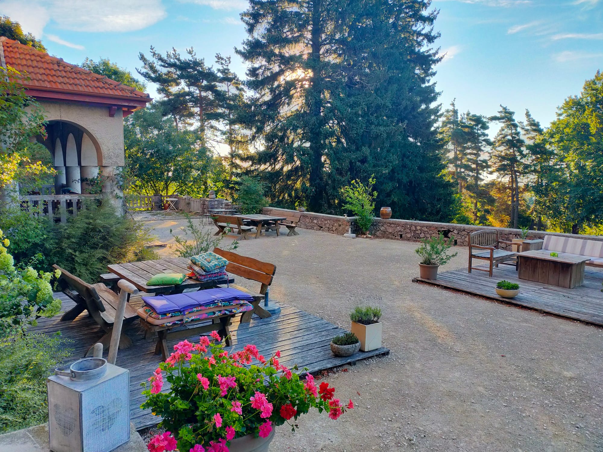 een rustgevende oase voor inspiratie en bezinning in de Franse bergen. Het kasteel is een voormalig meisjesinternaat en een ‘colonie de vacances’, in 1928 gesticht door religieuze Jezuïten nonnen, gelegen op een omsloten domein temidden van de prachtige natuur van de Ardèche. Met veel groen, oude majestueuze bomen, een weldaad aan bloemen, struiken en paddestoelen, een groentetuin met serres en een eigen bron.